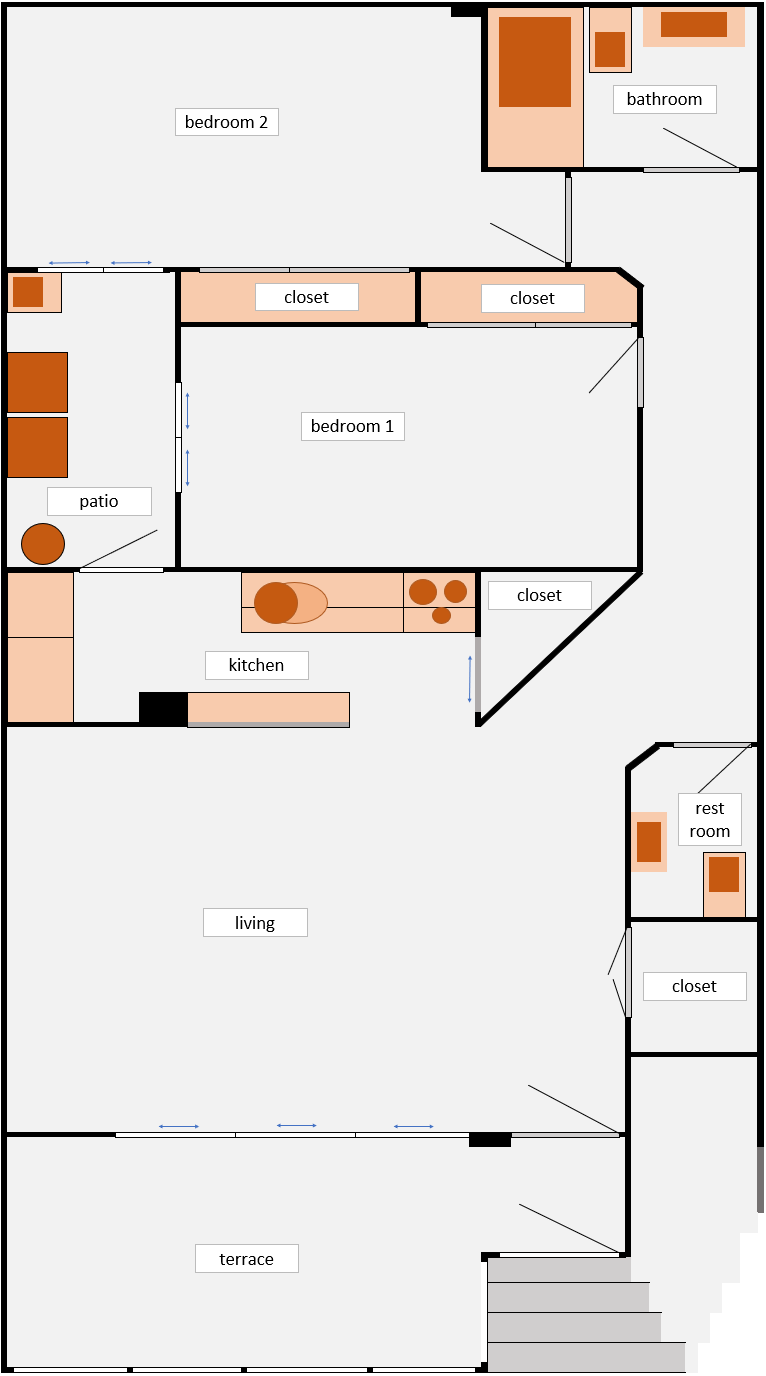 | slaapkamers | 2, beide met 2-persoons bedden en ingebouwde kasten |