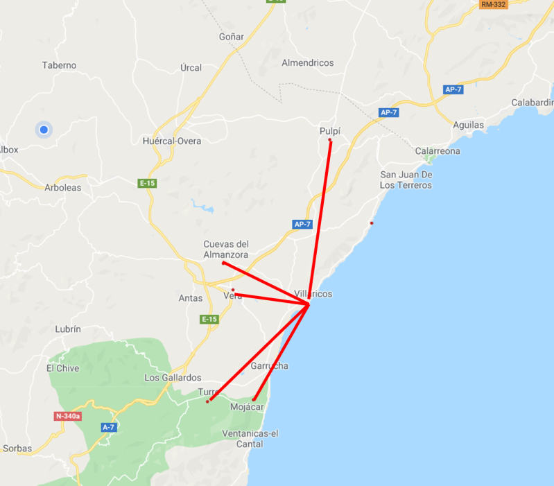 | Valle del Este | Autovia E-15, exit 529 to Valle del Este / Vera | 18 / 71 | € 10 - 45 | +34 950 398 743 |